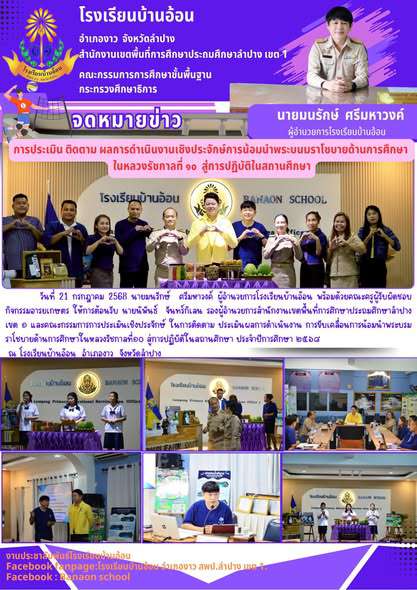 วันที่ 21 กรกฎาคม 2568 นายมนรักษ์ ศรีมหาวงค์ ผู้อำนวยการโรงเรียนบ้านอ้อน พร้อมด้วยคณะครูผู้รับผิดชอบกิจกรรมอารยเกษตร ให้การต้อนรับ นายนิพันธ์ จันทร์กิเสน รองผู้อำนวยการสำนักงานเขตพื้นที่การศึกษาประถมศึกษาลำปาง เขต ๑ และคณะกรรมการการประเมินเชิงประจักษ์ ในการติดตาม ประเมินผลการดำเนินงาน การขับเคลื่อนการน้อมนำพระบรมราโชบายด้านการศึกษาในหลวงรัชกาลที่๑๐ สู่การปฏิบัติในสถานศึกษา ประจำปีการศึกษา ๒๕๖๘
